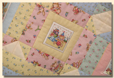 Это одеялко было сделано на заказ для одной маленькой девочки. Не правда ли американские ткани фирмы Cranston из одной коллекции так дополняют друг друга? Размер одеялка 118 х 128 см.