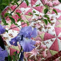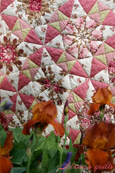 Очень долго думала, чтобы такого сварганить… чтобы и просто и красиво (как жаль, что оно в 95% процентов случает так не получается). Отвлекаясь от темы, скажу, что она просто обожает выращивать розы. И все фотографии моих одеял на открытом воздухе, сделаны исключительно на фоне вырщенных ею цветов и вечнозеленых деревьев. Долго подбирать ткани не пришлось. В свое время я заказала коллекцию из нескольких тканей с розами, правда их пришлось дополнить и другими тканями. Вот, что было у меня в наличии: