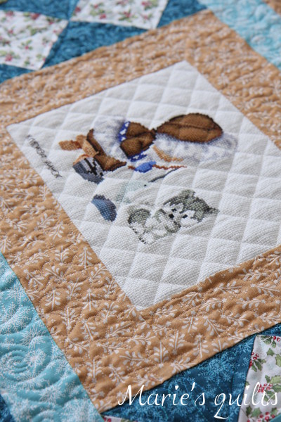 Несколько месяцев назад, я получила по почте письмо от одной женщины, которая просила меня сшить для нее лоскутное одеяло с вышивкой. Я долго сомневалась брать или нет… Работа с вышивкой вещь специфическая. Ее сильно не простегаешь, канва сыпется, толстая по сравнению с тканью, нужно предварительно проклеивать и пр. ньюансы. Но зная мой упрямый характер и страсть к борьбе, я согласилась. тем более, что и вышивка была в рождественском стиле. Примерно месяц работы и перед вами “На далеком севере…”