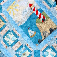 Можно практически на 100% сказать, что это копия одеяла “Морские приключения”, только с небольшими изменениями. Использовала другой блок и совсем немного изменила центральный мотив.