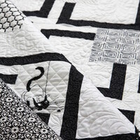 Вот так и у меня совсем не складывались отношения с черным котом. Видимо цвет способствовал :) В прошлом году, я получила от одной замечательной девушки-вышивальщицы 2 набора готовых вышивок крестом. И она попросила меня сшить из них два одеяла: для сына и себя. Первую партию вышивок я удачно переработала и так родилось одеялко ““На далеком севере””. А вот вторая часть вышивок все лежала и ждала своего часа.