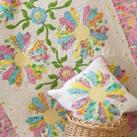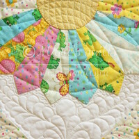 Для создания этого комплекта использовались точно такие же ткани (“Girlie Girl” от Moda) как и в одеялке Sunny. Это было собрано первым, ну а собралось и простегалось вторым.