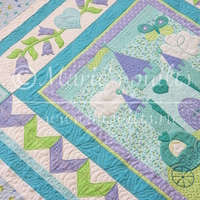 Подчеркнуть атмосферу сказочности я решила и подушками. Их 4 и каждая меньше предыдущей (40 х 40 см, 30 х 30 см, 25 х 25 см, 15 х 15 см). Свого рода напоминание о сказке “Принцесса на горошине”. Наволочки также как и одеялко полностью простеганы. У каждой свой рисунок, который не повторяется. Окантовка пришита вручную. Размер одеяльца 122 х 143 см.