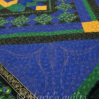 Вы не представляете насколько сложно шить из того, к чему не очень привык. Но я подумала, что приму это вызов, поскольку это еще один шанс попробовать себя не в своей стихии. Больше чем полгода пролежали у меня ткани и весной я приступила к работе. Фотографий много не делала, поэтому то, что есть - исключительно рабочие фото. Дизайн также дался мне не просто. Во-первых нужно было шить из тканей имеющихся в наличии, а во-вторых их количество было ограничено. В общем, я крутила, вертела…. И шила на свой страх и риск. Еще одним сложным моментом для меня была кайма. Ткани на нее не было и по счастливой случайности, я нашла ткань с похожим павлиньим рисунком, которая неплохо подошла и по цвету.