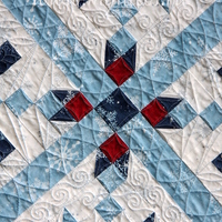 Но придумать это одно, а создать дизайн и сшить к установленому сроку одеяло оказалось делом сложным. Не потому, что сам дизайн был непростым, дело было во времени. Сроки поджимали, верстка журнала у меня занимала столько времени, что на шитье практически ничего не оставалось. Я много раз думала бросить одеяло, не дошивать его, но брала себя в руки и сонными глазами продолжала сначала собирать блоки, а затем стегать ту махину, которая получилась у меня в итоге. Размер одеяла 85.5 х 102 дюйма (217 х 260 см).
