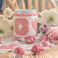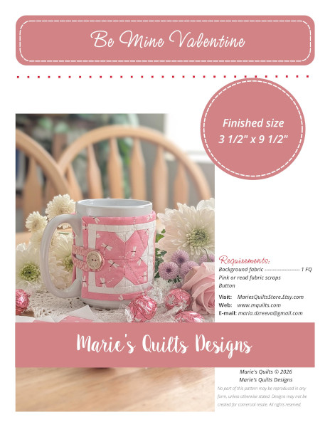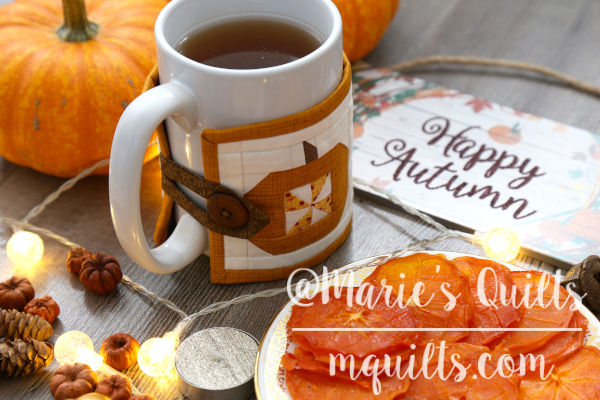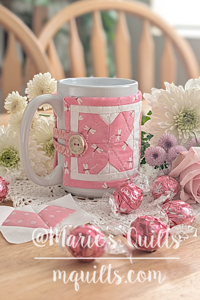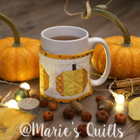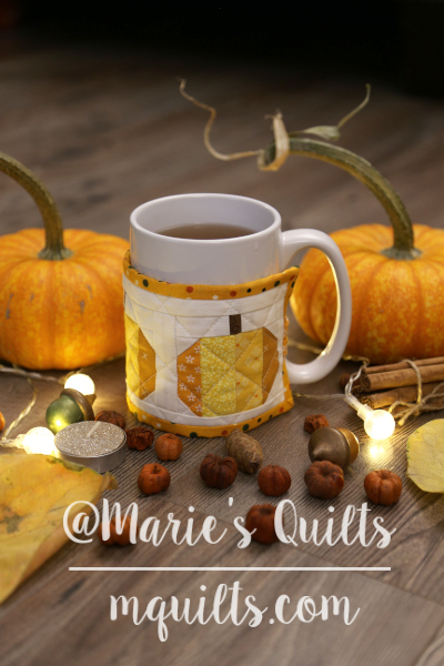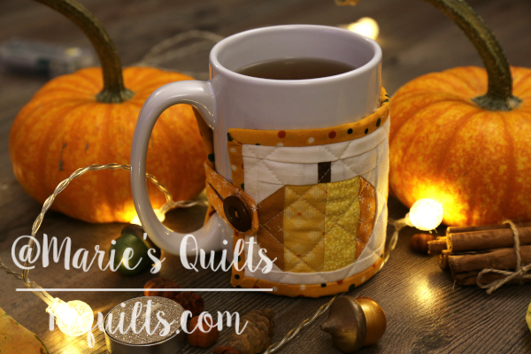 About a month ago, I decided it was time to return to my favorite hobby—making quilts. I thought starting with a big project might be too challenging, so for my first project I chose to make a mug warmer. When it was finished, I turned it into a pdf-pattern.