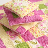 Почти до последнего кусочка использовала все ткани своей любимой коллекции. Очень нравится то, что получилось. В комплект к одеялку сшила и три лоскутные подушечки. Размер одеялка 50 - 50 см, размеры подушечек 15 х 15 см, 13 х 13 см и 11 х 11 см.